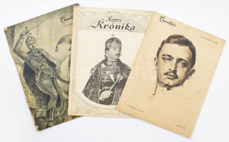 1916 3 db IV. Károly királlyal és a koronázással foglalkozó újság https://www.darabanth.com/de/469-Fernauktion/469.0/Kunst-Dokumente-andere-Sammelgebiete/Drucksachen~1000014/1916-3-db-IV-Karoly-kirallyal-es-a-koronazassal-foglalkozo-ujsag~II3171228