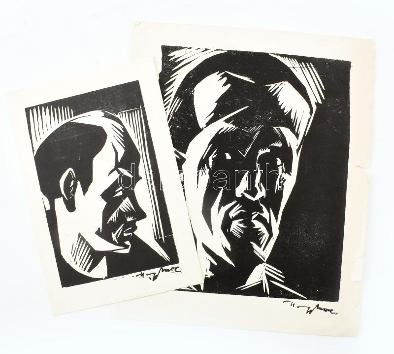 1982-1983 Nagy Imre (1893-1976): Tamási Áron és Tompa László portréi, 2 db fametszetről készült reprodukció, a Csíkszeredai Múzeum kiadása. Az egyiken lapszéli szakadásokkal, gyűrődésekkel, lapméret: 22x14,5 cm és 28,5x23,5 cm