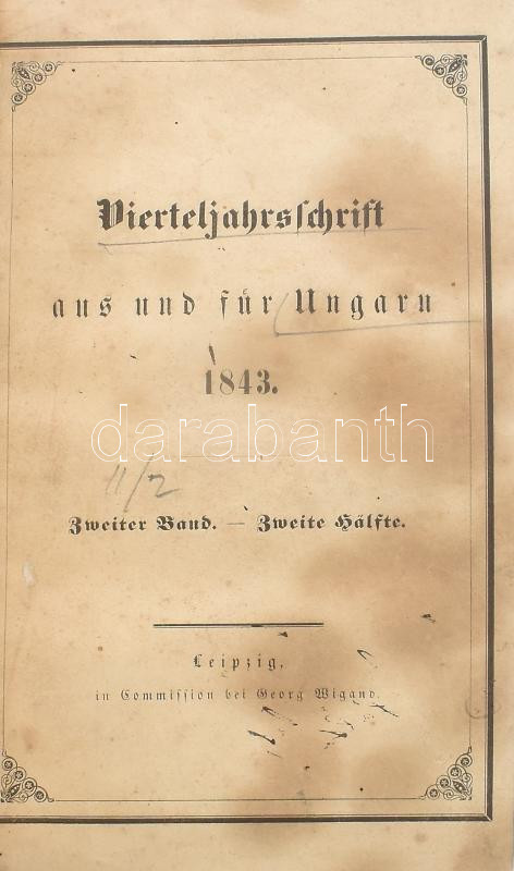 Vierteljahrsschrift aus und für Ungarn. 1843 1 kötet 2. füzet + 2. köt...