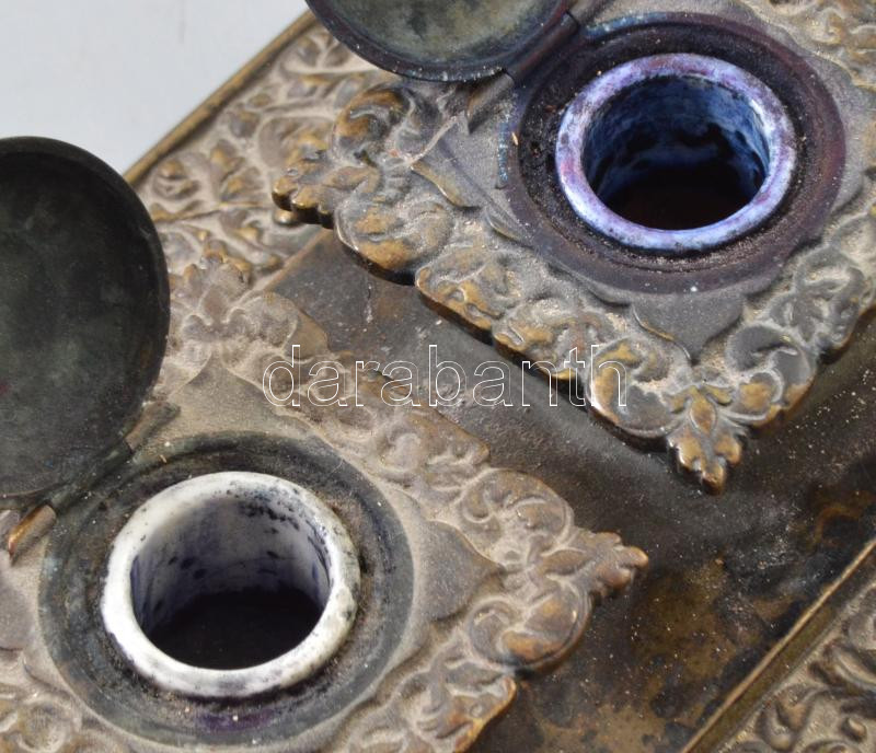 Szecessziós kalamáris, rokályos és maszk díszítésekkel, porcelán betét... https://www.darabanth.com/de/469-Fernauktion/469.0/Kunst-Dokumente-andere-Sammelgebiete/Flohmarkt~500014/Szecesszios-kalamaris-rokalyos-es-maszk-diszitesekkel-porcelan-betetekkel-22x15-cm~II3153700