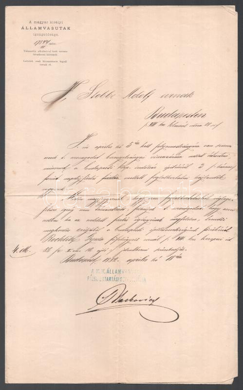 1882-1895 Stobbe Adolf építőmester, Stobbe Kálmán (1883-1936) építőmester, díszlettervező, labdarúgó, a magyar válogatott edzője édesapja részére szóló vasúttal (MÁV) kapcsolatos iratok, 3 db.