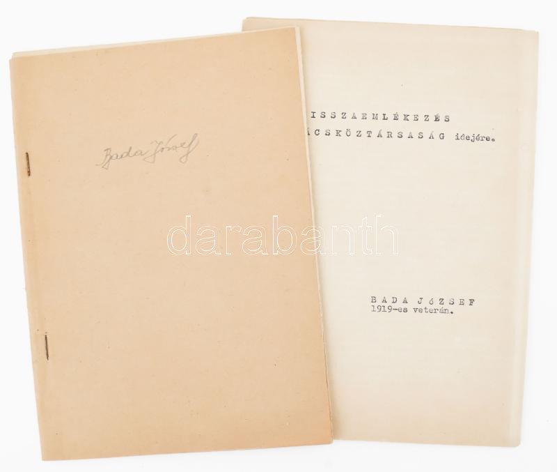 Bada József 1919-es veterán 2 darab írógéppel gépelt visszaemlékezése ... https://www.darabanth.com/de/469-Fernauktion/469.0/Kunst-Dokumente-andere-Sammelgebiete/Historische-Dokumenten-Handschriften~500021/Bada-Jozsef-1919-es-veteran-2-darab-irogeppel-gepelt-visszaemlekezese-a-Tanacskoztarsasa~II3172598