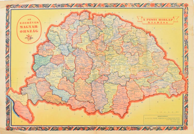 1938 Az ezeréves Magyarország térképe, a hátoldalon Európa 1938 végén,... https://www.darabanth.com/de/469-Fernauktion/469.0/Kunst-Dokumente-andere-Sammelgebiete/Landkarten~1000011/1938-Az-ezereves-Magyarorszag-terkepe-a-hatoldalon-Europa-1938-vegen-Pesti-Hirlap-hajtot~II3170975