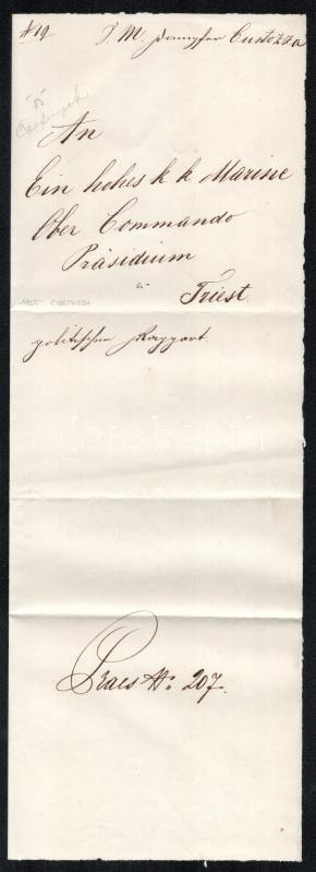 1855 S.M.S. Custoza a konstantinápolyi kikötőben állomásozó hajóról küldött levél a flotta parancsokságnak Triesztbe / 1855