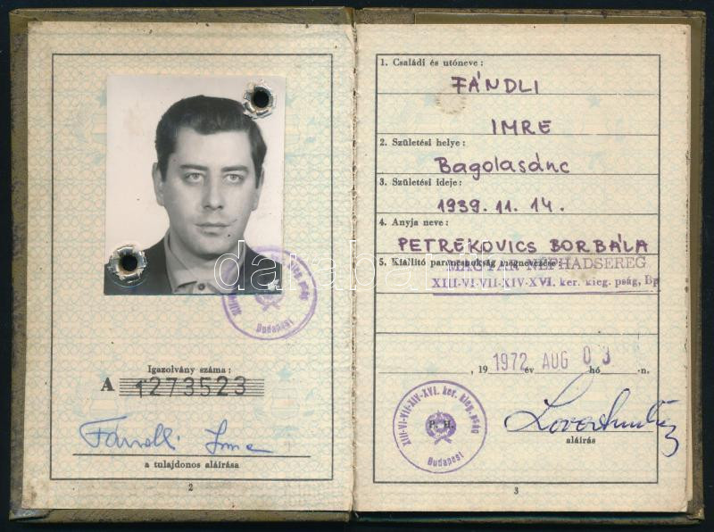 1972 Fényképes katonai igazolvány, főszakács részére https://www.darabanth.com/de/469-Fernauktion/469.0/Kunst-Dokumente-andere-Sammelgebiete/Militaria~2000024/1972-Fenykepes-katonai-igazolvany-foszakacs-reszere~II3100651