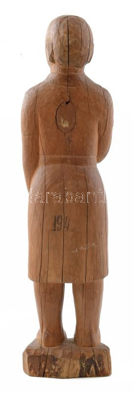 Beschreibung: Frontmunka faragott fa szobor. 1942, sérüléssel, m: 40 cm