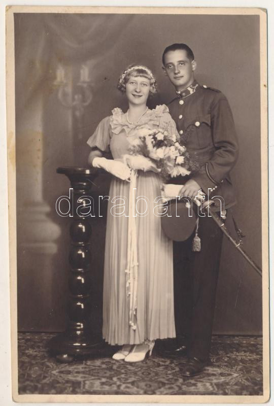 cca 1930 Katona esküvői fotója, fotólap Schäffer Gy. budapesti műtermé... https://www.darabanth.com/de/469-Fernauktion/469.0/Kunst-Dokumente-andere-Sammelgebiete/Militaria~2000024/cca-1930-Katona-eskuvoi-fotoja-fotolap-Schaffer-Gy-budapesti-mutermebol-9C39713-cm~II3172497