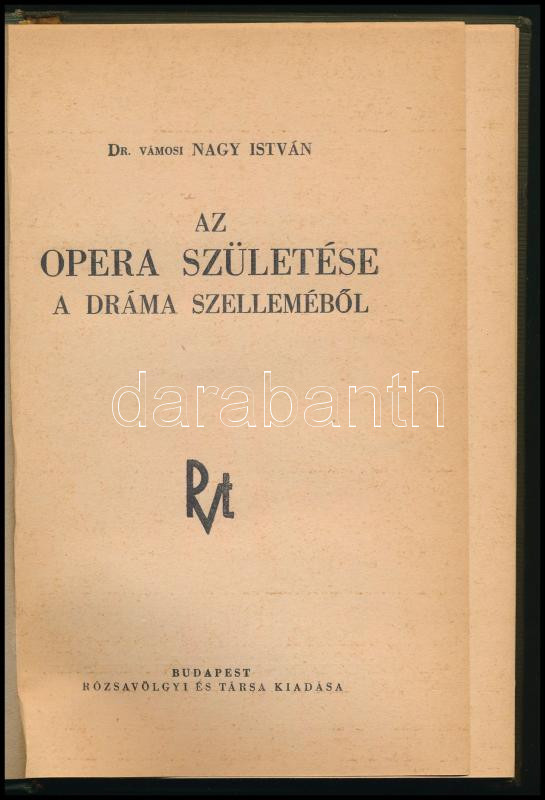 Nagy István, vámosi: Az opera születése a dráma szelleméből. Bp.,1944,... https://www.darabanth.com/de/469-Fernauktion/469.0/Kunst-Dokumente-andere-Sammelgebiete/Musik-Noten-Instrumenten~1000012/Nagy-Istvan-vamosi-Az-opera-szuletese-a-drama-szellemebol-Bp-1944-Rozsavolgyi-AtkotC3~II3176032