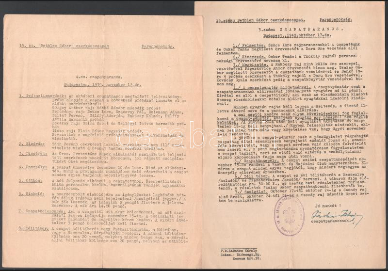 1939 Bethlen Gábor cserkészcsapat két napi csapatparancs https://www.darabanth.com/de/469-Fernauktion/469.0/Kunst-Dokumente-andere-Sammelgebiete/Pfadfinder~1000005/1939-Bethlen-Gabor-cserkeszcsapat-ket-napi-csapatparancs~II3171736