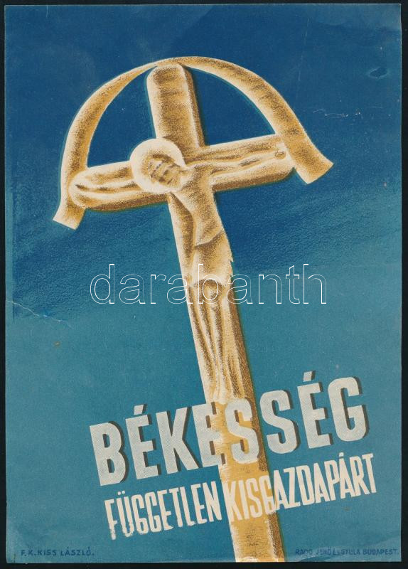 1946 ,,Békesség", Független Kisgazdapárt (FKgP) politikai plakát (kisplakát, villamosplakát), Bp., Radó Jenő és Gyula-ny., kisebb szakadással, 24x17 cm