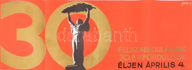 Gönczi-Gebhardt Tibor (1902-1994): Felszabadulásunk 30. évfordulója Él... https://www.darabanth.com/de/469-Fernauktion/469.0/Kunst-Dokumente-andere-Sammelgebiete/Plakat~1000015/Gonczi-Gebhardt-Tibor-1902-1994-Felszabadulasunk-30-evforduloja-Eljen-aprilis-4-plakat-~II3171914