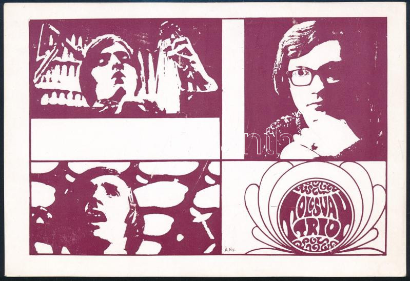 Beschreibung: Tolcsvay-trió tagjainak aláírása egy őket ábrázoló nyomtatványon