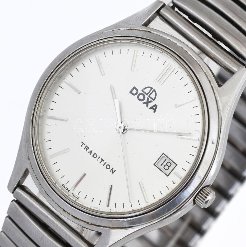 Beschreibung: Doxa Tradition férfi quartz óra jó állapotban, fém szíjjal, elem nélkül d: 38 mm