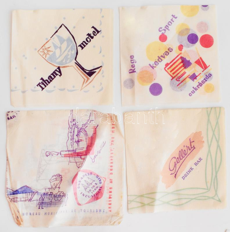 Beschreibung: 4 db retro reklámos szalvéta: Gellért Hotel, Rege, Tihany, Budapest látkép