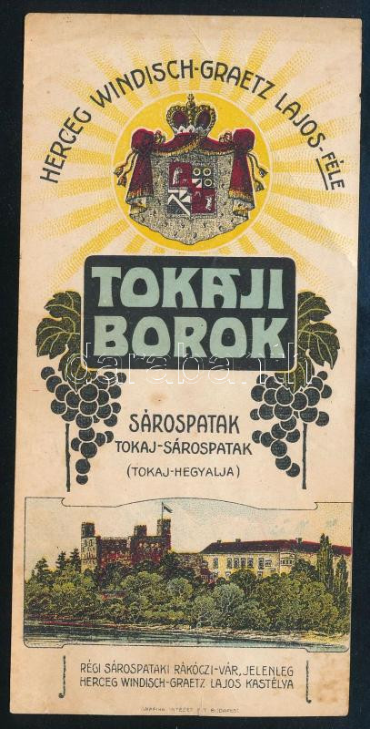 cca 1910-1920 Herceg Windisch-Graetz Lajos-féle Tokaji borok, színes l... https://www.darabanth.com/de/469-Fernauktion/469.0/Kunst-Dokumente-andere-Sammelgebiete/Werbungen~1000001/cca-1910-1920-Herceg-Windisch-Graetz-Lajos-fele-Tokaji-borok-szines-litho-szamolocedula-kissC3~II3175172