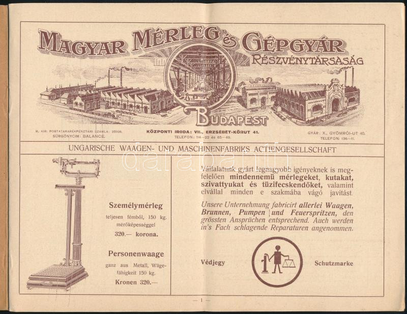 cca 1930 Magyar Mérleg- és Gépgyár rt. képes termékkatalógus 16 p. Haj... https://www.darabanth.com/de/469-Fernauktion/469.0/Kunst-Dokumente-andere-Sammelgebiete/Werbungen~1000001/cca-1930-Magyar-Merleg-es-Gepgyar-rt-kepes-termekkatalogus-16-p-Hajtasnyommal~II3161331