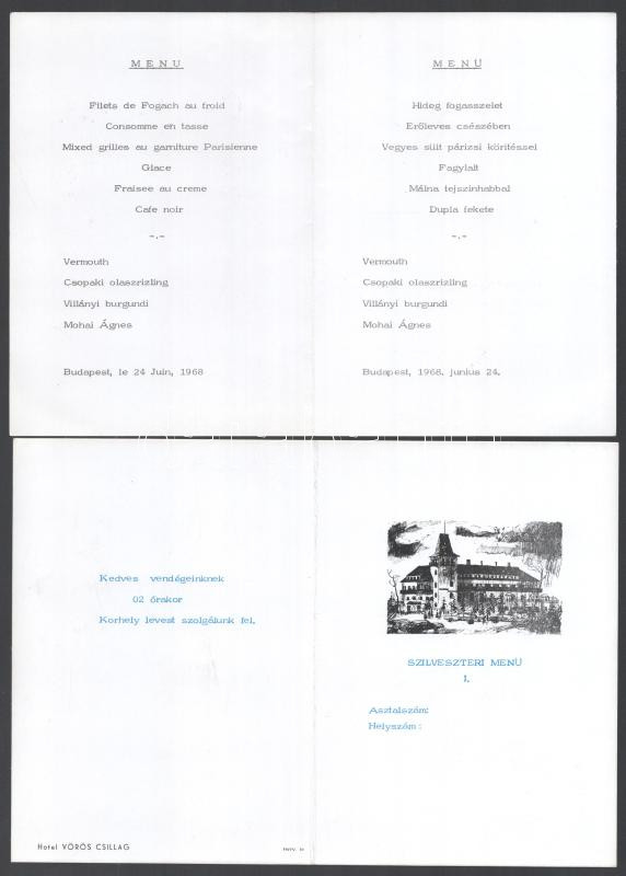 cca 1960-1980 8 db Hotel Vörös csillag szalvéta és menükártya https://www.darabanth.com/de/469-Fernauktion/469.0/Kunst-Dokumente-andere-Sammelgebiete/Werbungen~1000001/cca-1960-1980-8-db-Hotel-Voros-csillag-szalveta-es-menukartya~II3157570