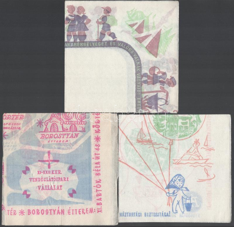 Beschreibung: cca 1970 Borostyán étterem, ÁB, Takarékbélyeg 3 db reklámos szalvéta