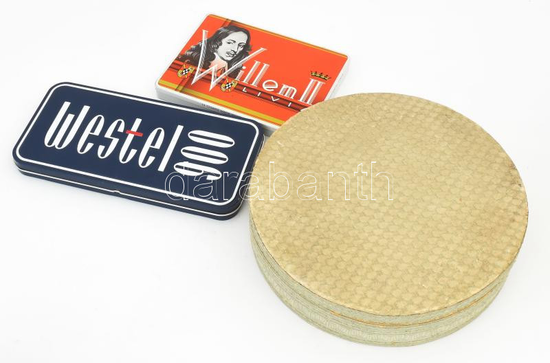 Beschreibung: d: Markiz bonbonos doboz papír d: 25 cm + 2 db fém doboz
