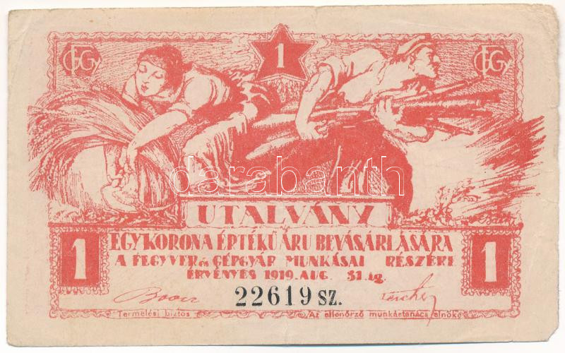 Beschreibung: Budapest 1919. 2K "Fegyver és Gépgyár" utalvány T:F