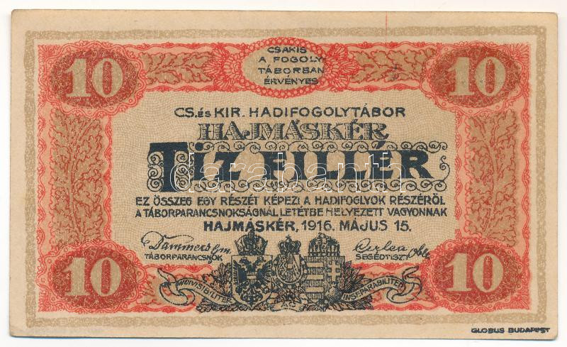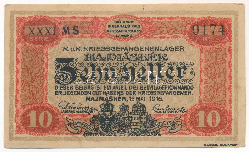 Hajmáskér / hadifogolytábor 1916. május 15. 10f római sorozat és arab sorszámozás T:VF Hungary / Hajmáskér / POW camp 15.05.1916. 10 Heller with Roman series and Arabic serial numbers C:VF Adamo HHH-2.1