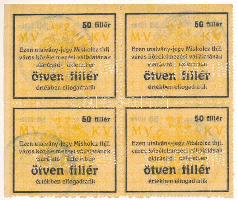 Beschreibung: Miskolc ~1918-1919. 50f "Miskolcz thjf." utalvány-jegy négyes ívben, mind "MISKOLCZ" perforációval, bélyegzéssel T:AU