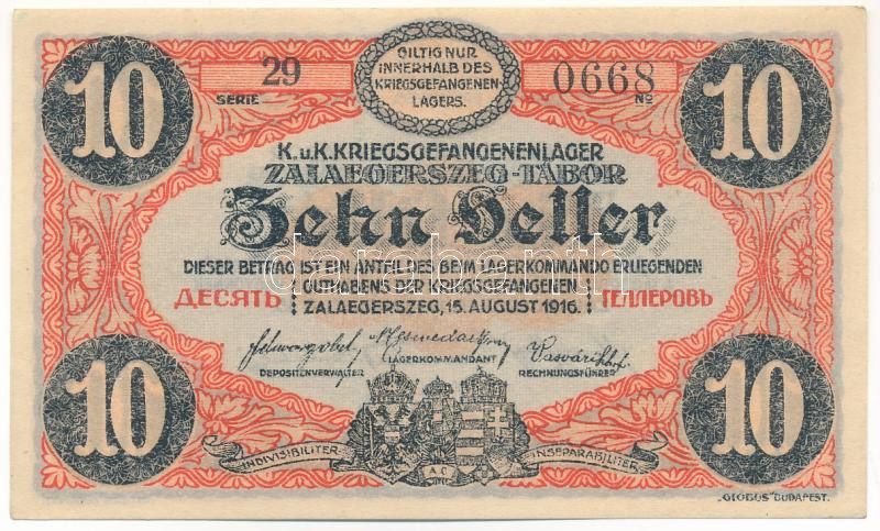 Zalaegerszeg / hadifogolytábor 1916. augusztus 15. 10f arab sorozat és sorszámmal T:AU / Hungary / Zalaegerszeg / POW camp 1916.08.15. 10 Heller with arabic serial numbers C:AU Adamo HHZ-1.1.3V