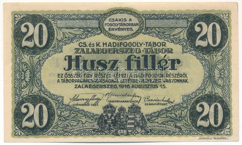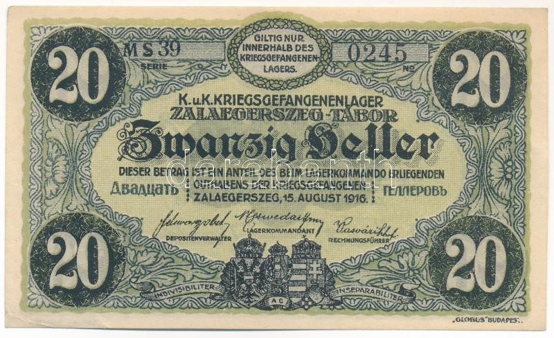 Zalaegerszeg / hadifogolytábor 1916. augusztus 15. 20f arab sorozat és sorszámmal, "MS" jelzéssel T:XF Hungary / Zalaegerszeg / POW camp 1916.08.15. 20 Heller with arabic serial numbers and "MS" C:XF Adamo HHZ-1.2.3V
