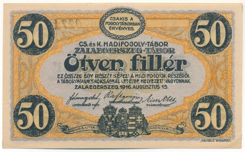 Zalaegerszeg / hadifogolytábor 1916. augusztus 15. 50f arab sorozat és sorszámmal, sorozat előtt "S" és számozás után "Gy" jelzéssel T:AU saroktörések / Hungary / Zalaegerszeg / POW camp 1916.08.15. 50 Heller with arabic serial numbers and with mark "S" before series and "Gy" after serial C:AU folded corner Adamo HHZ-1.3.4V