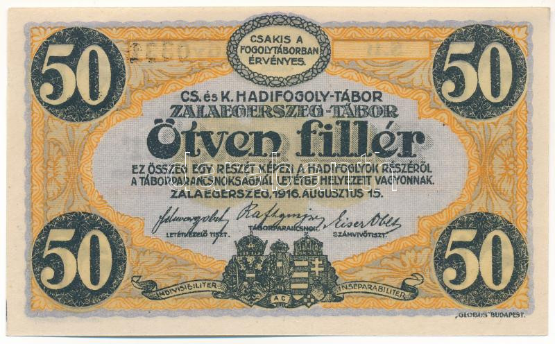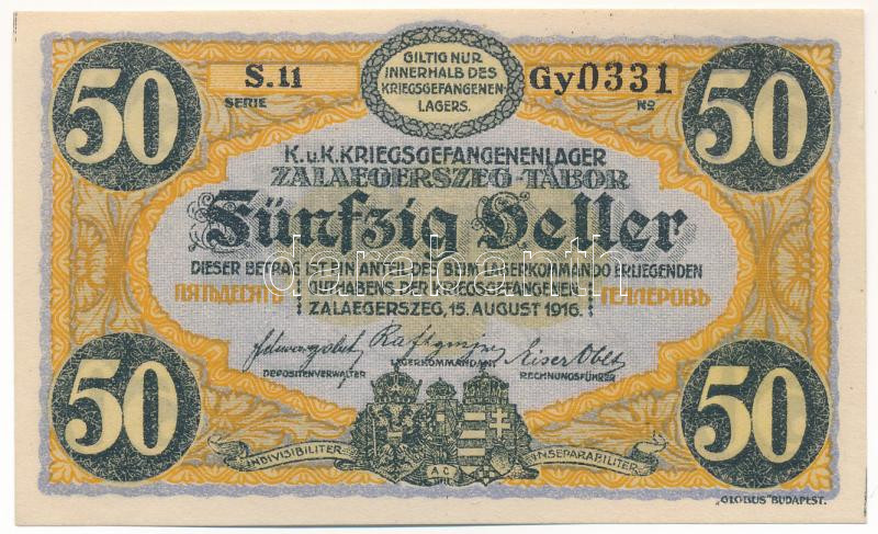 Zalaegerszeg / hadifogolytábor 1916. augusztus 15. 50f arab sorozat és sorszámmal, sorozat előtt "S" és számozás után "Gy" jelzéssel T:AU / Hungary / Zalaegerszeg / POW camp 1916.08.15. 50 Heller with arabic serial numbers and with mark "S" before series and "Gy" after serial C:AU Adamo HHZ-1.3.4V