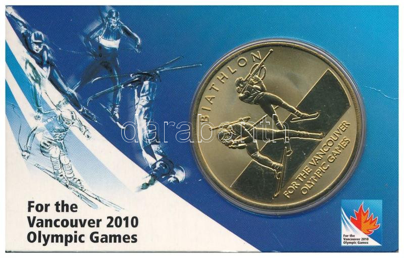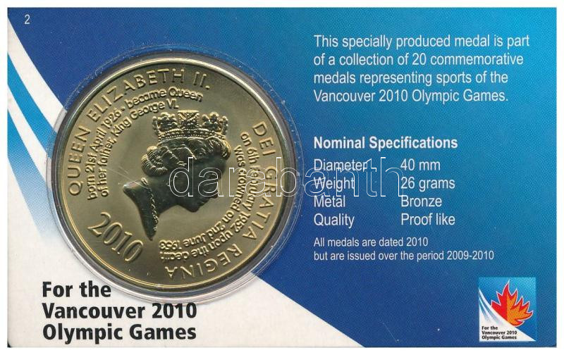 Kanada 2010. "XXI. Téli Olimpia, Vancouver - Biatlon" kétoldalas bronz emlékérem eredeti, "2010-es Vancouveri Téli Olimpiai Játékok" karton díszlapon (40mm) T:P Canada 2010. "2010 Winter Olympics, Vancouver - Biathlon" double-sided bronze medallion in original, "For the Vancouver 2010 Olympic Games" cardboard sheet (40mm) C:P