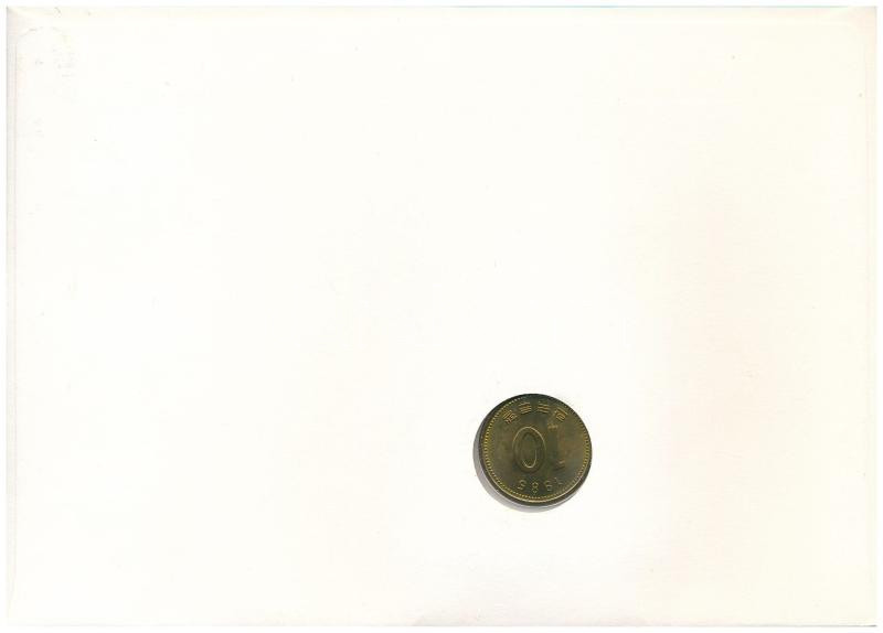 Dél-Korea 1985. 10W Cu felbélyegzett borítékban, bélyegzéssel T:UNC patina South Korea 1985. 10 Won Cu in envelope with stamp, and cancellation C:UNC patina