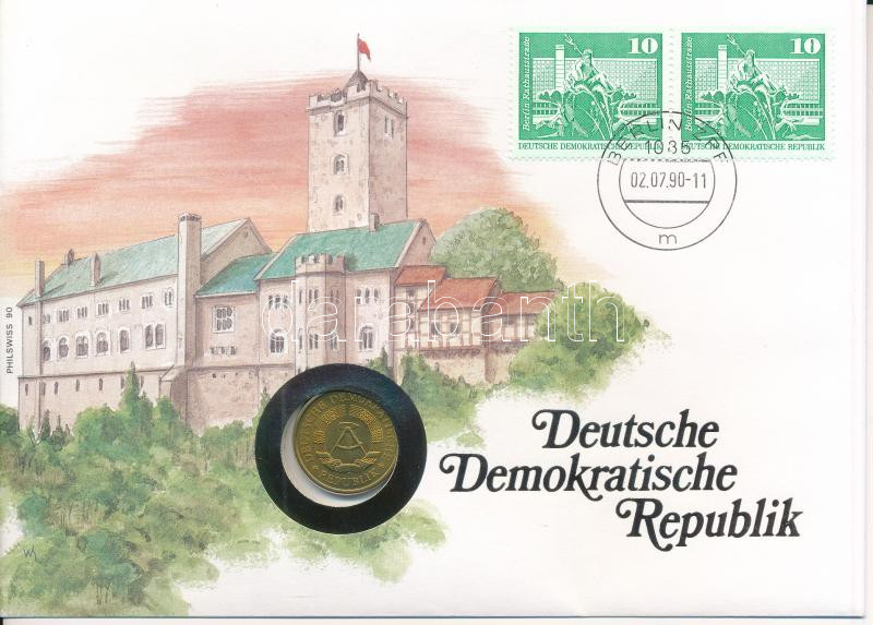 NDK 1989A 20pf, felbélyegzett borítékban, bélyegzéssel, német nyelvű leírással T:UNC GDR 1989A 20 Pfennig in envelope with stamp and cancellation, with German description C:UNC