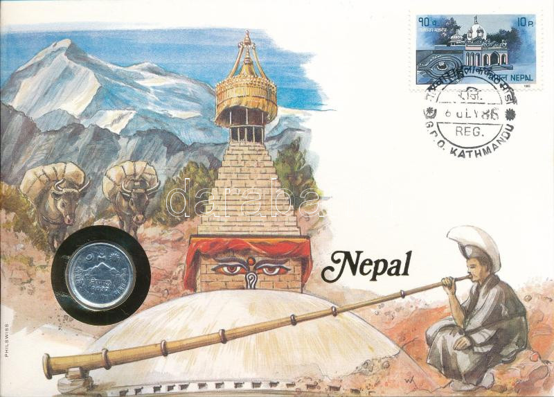 Nepál 1975. 5p felbélyegzett borítékban, bélyegzéssel, német nyelvű leírással T:XF Nepal 1975. 5 Paisa in envelope with stamp and cancellation, with German description C:XF