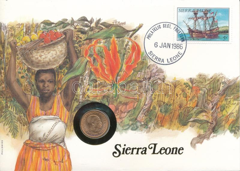 Sierra Leone 1964. 1/2c bronz felbélyegzett borítékban, bélyegzéssel, német nyelvű leírással T:AU patina Sierra Leone 1964. 1/2 Cent bronze in envelope with stamp, cancellation and a prospectus in german C:AU patina