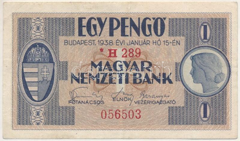 Hungary 1938. 1 Pengő "* H 289 056503" C:F