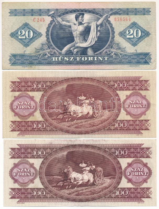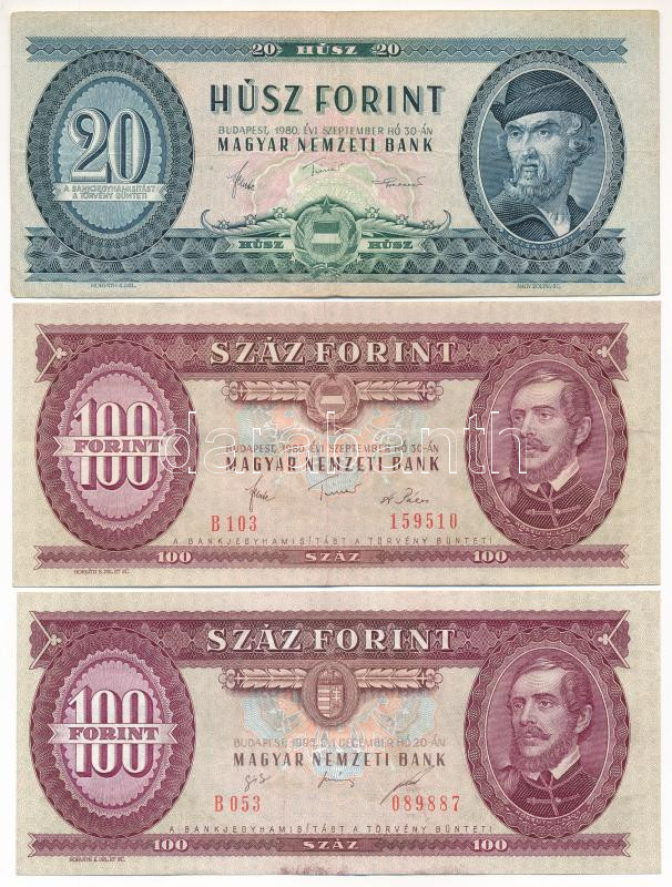 Beschreibung: 1980. 20Ft + 1980. 100Ft + 1995. 100Ft, mindhárom eltolódott nyomattal T:F közte szép papír