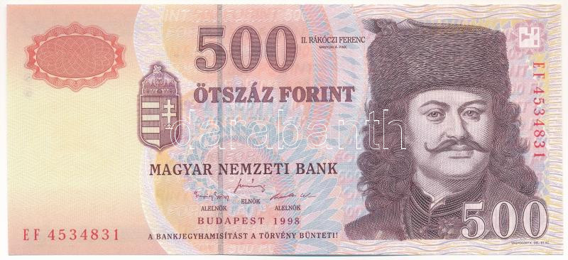 1998. 500Ft "EF 4534831" T:UNC https://www.darabanth.com/de/469-Fernauktion/469.0/Numismatik/Ungarische-Banknoten~2000008/1998-500Ft-EF-4534831-TUNC~II3175328