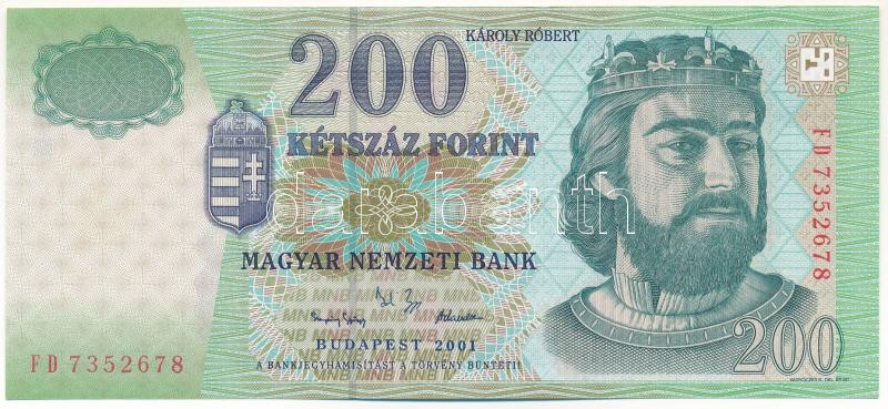 2001. 200Ft "FD 7352678" T:UNC https://www.darabanth.com/de/469-Fernauktion/469.0/Numismatik/Ungarische-Banknoten~2000008/2001-200Ft-FD-7352678-TUNC~II3175087