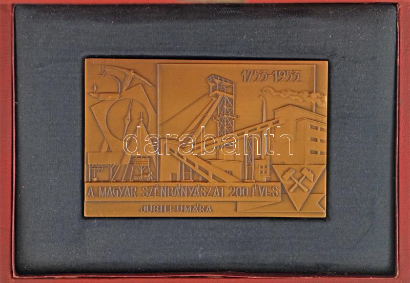 1953. "A magyar szénbányászat 200 éves jubileumára 1753-1953"... https://www.darabanth.com/de/469-Fernauktion/469.0/Numismatik/Ungarische-Gedenkmunzen-Plaketten~2000011/1953-A-magyar-szenbanyaszat-200-eves-jubileumara-1753-1953-bronz-plakett-eredeti-disztokba~II3174825