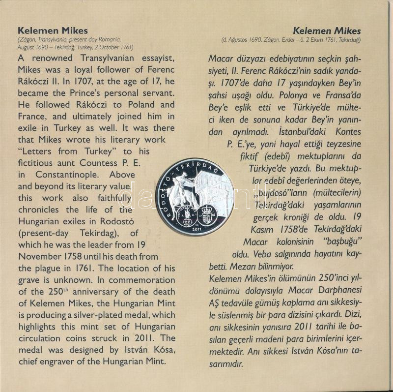 2011. 5Ft-200Ft (6xklf) forgalmi sor dísztokban, valamint 2011. "... https://www.darabanth.com/de/469-Fernauktion/469.0/Numismatik/Ungarische-Kursmunzsatze~2000010/2011-5Ft-200Ft-6xklf-forgalmi-sor-disztokban-valamint-2011-Mikes-Kelemen-ezustozott-Cu-Ni~II3173943
