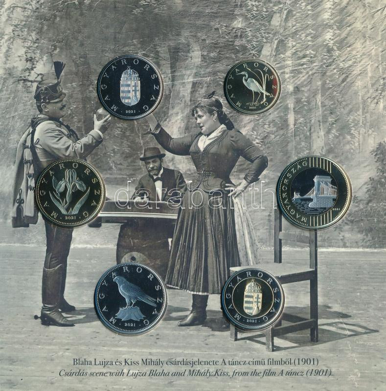 2021. 5Ft-200Ft (6xklf) + "120 éves a magyar film" kétoldalas ezüstözött Cu-Ni-Zn emlékérem "120 éves a magyar film" forgalmi szett karton dísztokban T:PP