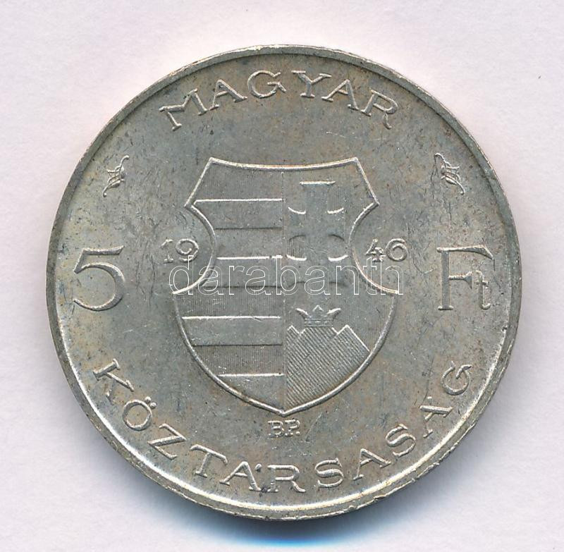 Beschreibung: 1946. 5Ft Ag "vastag Kossuth" T:AU,XF kis ph., paitna Adamo F8