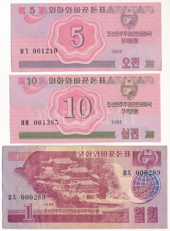 North Korea 1988. 5 Chon + 10 Chon + 1 Won "Socialist Visitor" C:AU-F