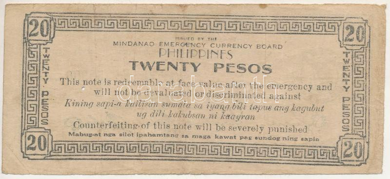 Fülöp-Szigetek / Mindanao 1944. 20P egy lyukkal érvénytelenítve T:VG k... https://www.darabanth.com/de/469-Fernauktion/469.0/Numismatik/Weltweit-Banknoten~2000015/Fulop-Szigetek-Mindanao-1944-20P-egy-lyukkal-ervenytelenitve-TVG-kis-folt-Philippines-Mi~II3173754