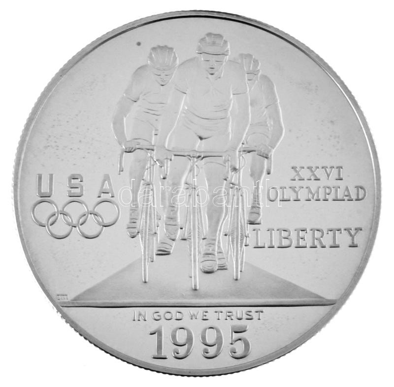 Amerikai Egyesült Államok 1995P 1$ Ag "Atlantai Olimpia 1996 - Kerékpározás" kapszulában T:PP kis patina / USA 1995P 1 Dollar Ag "Atlanta Olympics 1996 - Cycling" in capsule C:PP small patina Krause KM#263