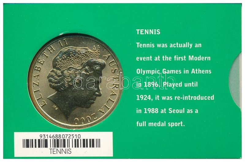 Ausztrália 2000. 5D Al-bronz "Sydneyi Olimpia 2000 - Tenisz" bliszterben T:BU Australia 2000. 5 Dollars Al-Bronze "Sydney 2000 Olympics - Tennis" in coincard C:BU Krause KM#409