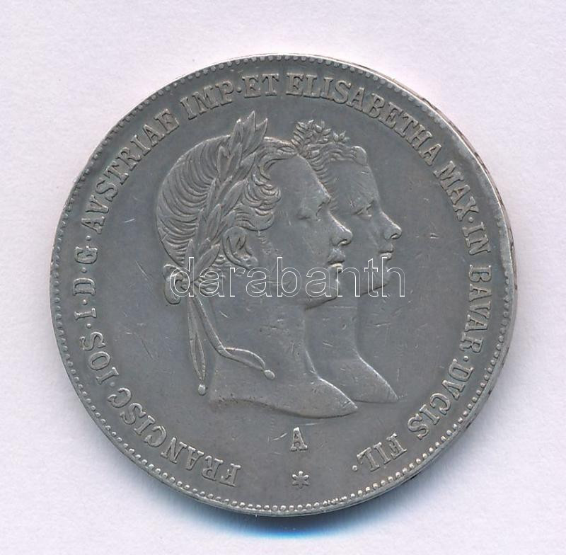 Ausztria 1854A 1G Ag "Ferenc József és Erzsébet házasságkötése" Bécs T:VF ph. Austria 1854A 1 Gulden Ag "Wedding of Franz Joseph and Elisabeth" Vienna C:VF edge error Krause X#M1