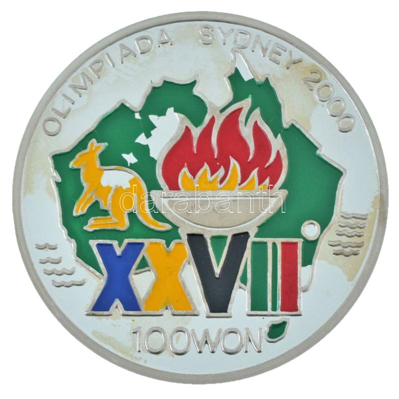 Észak-Korea 1997. 100W Ag "Sydney-i Olimpia 2000" multicolor festett T:PP North Korea 1997. 100 Won Ag "Sydney Olympics 2000" multicolor painted C:PP Krause KM#450