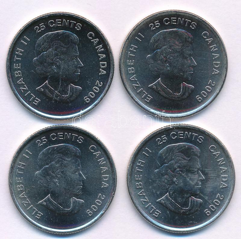 Kanada 2009. 25c Ni-acél "Olimpiai Arany pillanatok" (4xklf) forgalmi emlékkiadások, kapszulákban T:UNC,AU Canada 2009. 25 Cents Ni-steel "Olympics Golden Moments" (4xdiff) circulating commemorative coins in capsules C:UNC,AU